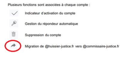À noter qu’il est inutile de prévenir vos contacts habituels. Votre précédente adresse en huissier-justice.fr devient un alias de la nouvelle. Les deux adresses sont, par conséquent, utilisables.