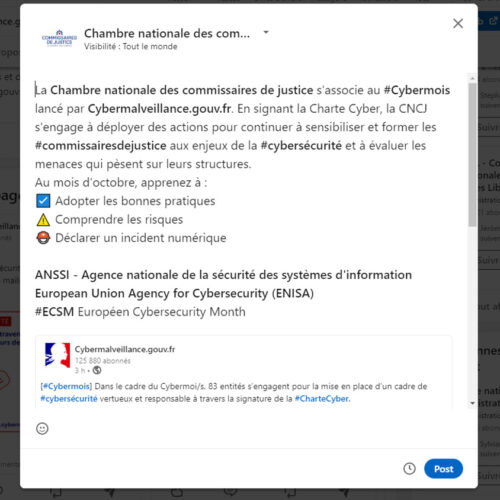 Le 13 septembre 2023 est une date cruciale : la CNCJ signe la CharteCyber et s'engage sur huit mesures clés :